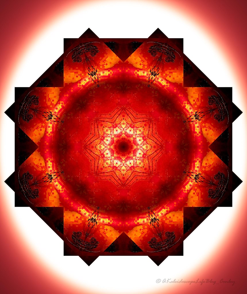 The kaleidoscope images are created by duplicating, rotating, and adjusting the photo.