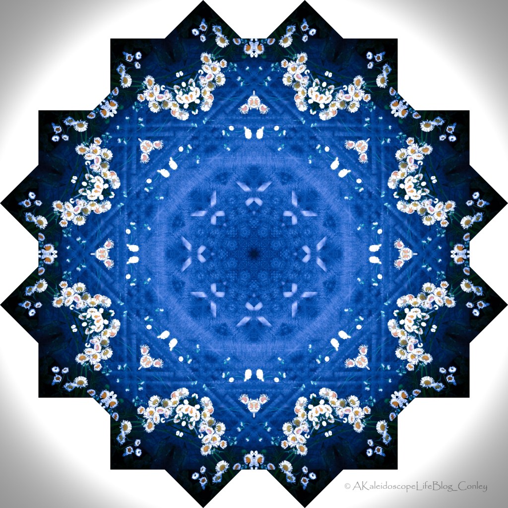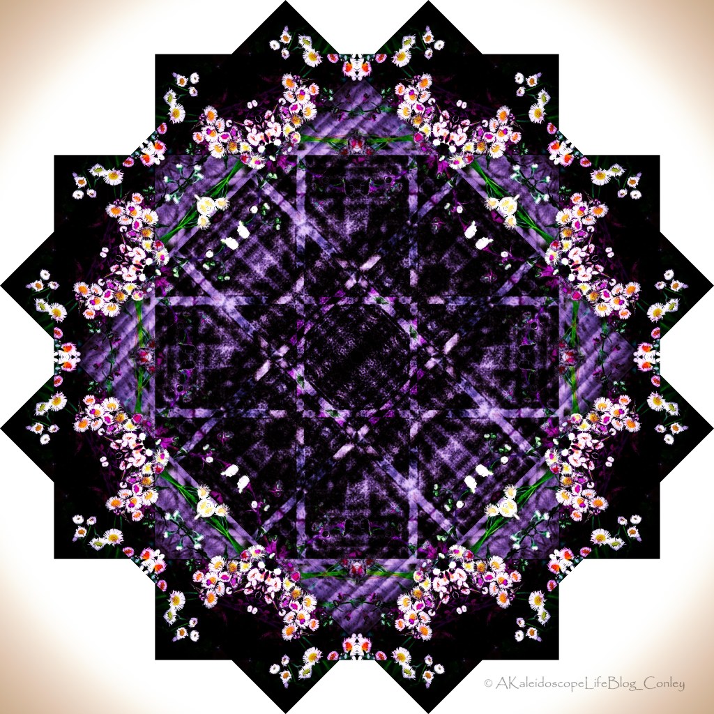 The kaleidoscope images are created by editing, duplicating, rotating, and adjusting the photo.