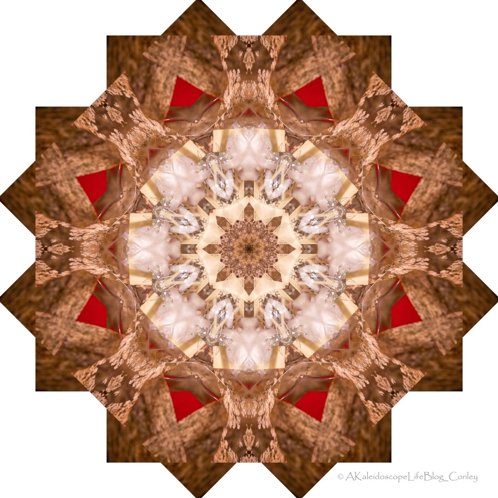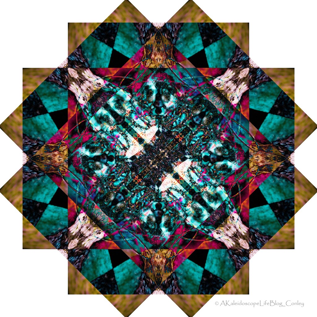 The kaleidoscope images are created by editing, duplicating, rotating, and adjusting the photo.