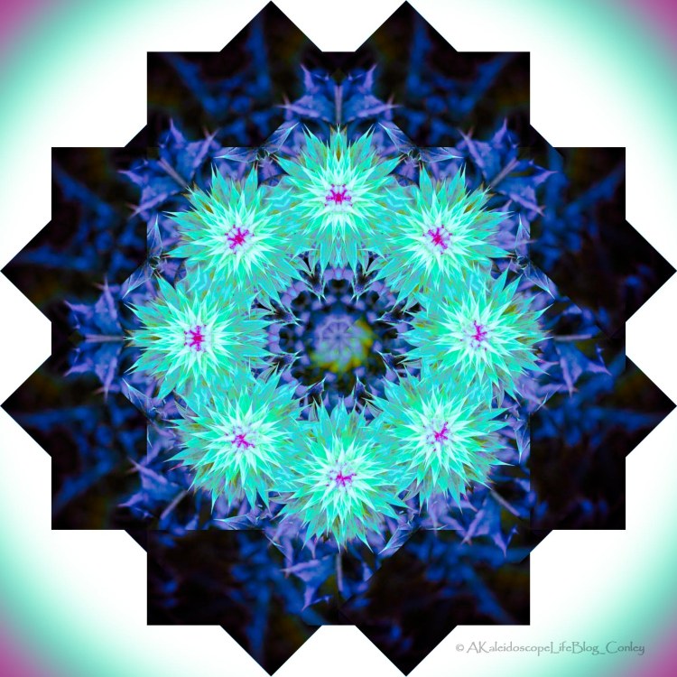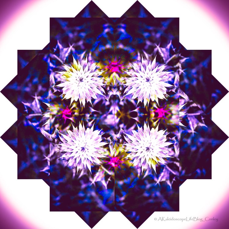 The kaleidoscope images are created by editing, duplicating, rotating, and adjusting the photo.