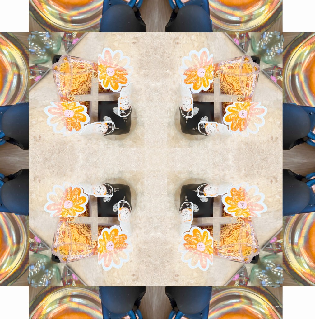 The kaleidoscope images are created by editing, duplicating, rotating, and adjusting the photo.